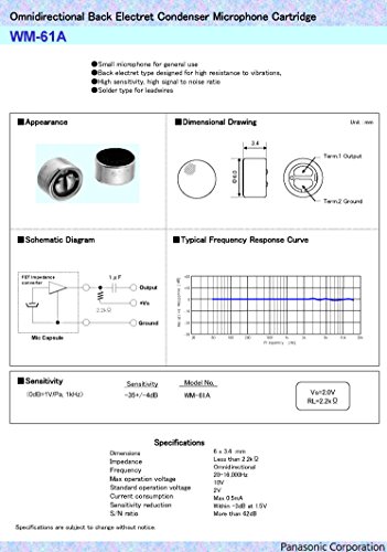 Wm 61a Datasheet Pinout Application Circuits Omnidirectional Back Electret Condenser Microphone Cartridge