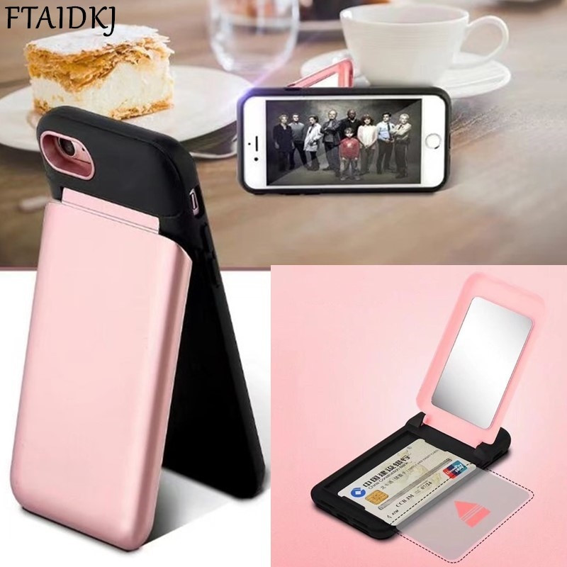 Ftaidkj Luxury Hidden Credit Card Holder Id Card Slot Hard Mirror Case Stand Cover For Iphone X Case 6 6s 7 8 Plus 10 Coque Capa Onshopdeals Com