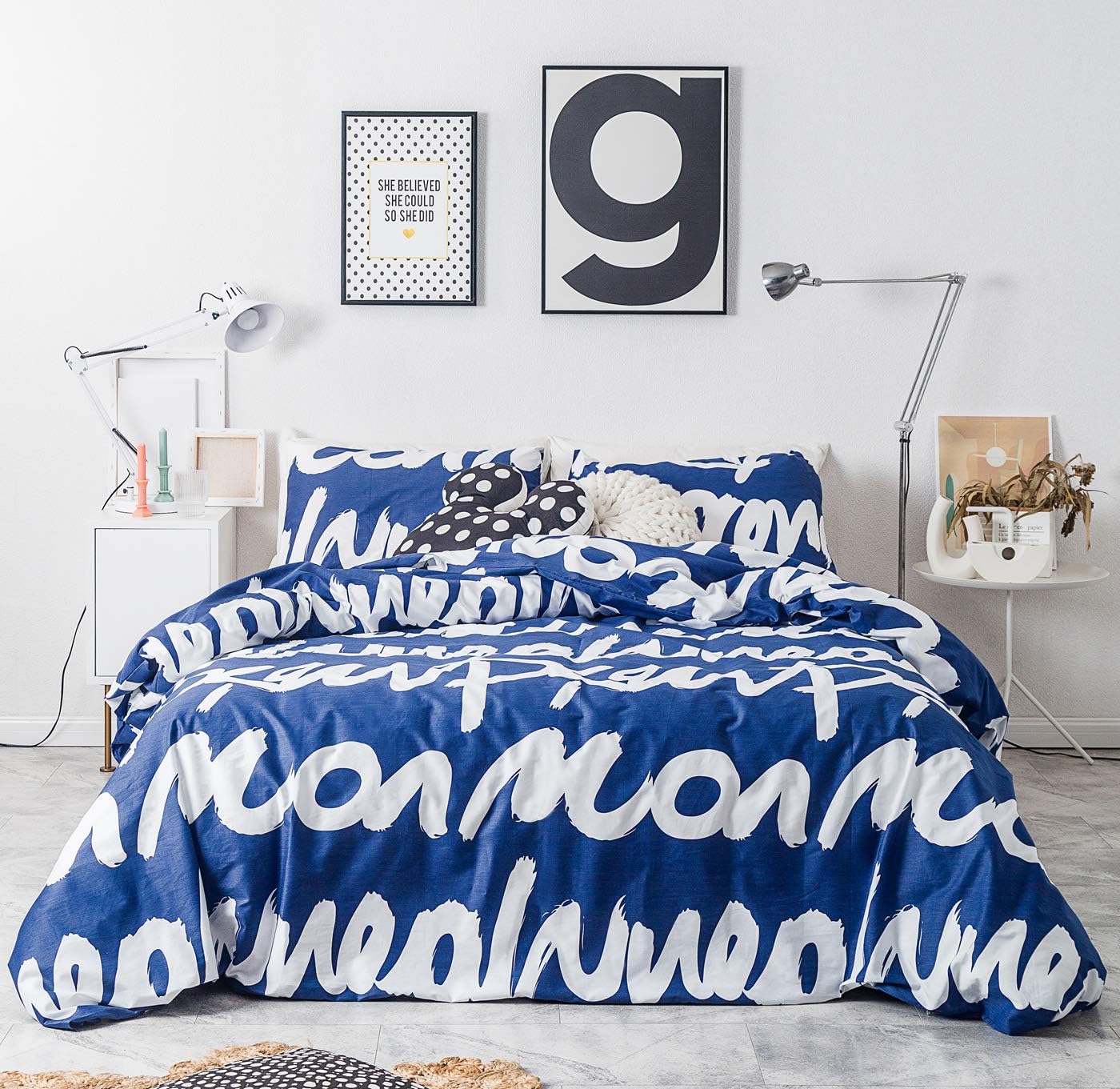 Amazon Com Yuheguoji Duvet Cover Set 100 Cotton King Size Blue