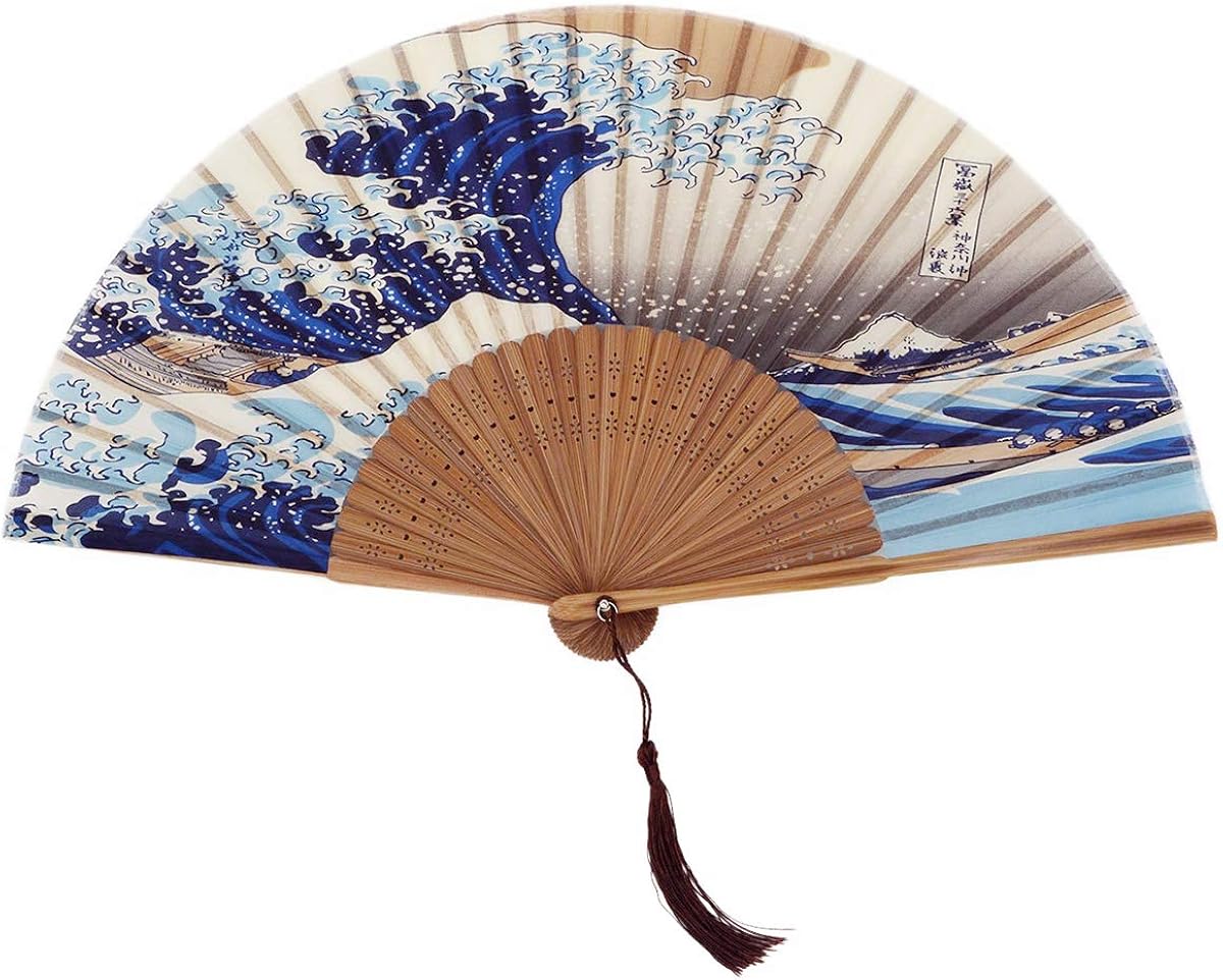 2019 New Real Silk Hand Fan Mount Fuji Kanagawa Waves Japanese